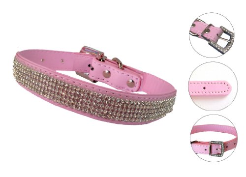 Superbe Collier en Cuir avec Rangs de Strass Swarovski - de Mammoth XT Collier en Cuir avec Rangs de Strass Swarovski est élégant et chic avec 3, 4 ou 5 Rangs de Strass Swarovski. Fabriqué avec du cuir de première qualité élevée avec une boucle en alliage de zinc et anneau en D pour attacher laisses pour chiens et pendentifs. Disponible dans nos 3 tailles standard pour accueillir la plupart des races. Disponible en noir, rose et blanc!
