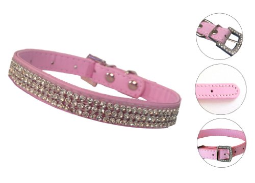 Superbe Collier en Cuir avec Rangs de Strass Swarovski - de Mammoth XT Collier en Cuir avec Rangs de Strass Swarovski est élégant et chic avec 3, 4 ou 5 Rangs de Strass Swarovski. Fabriqué avec du cuir de première qualité élevée avec une boucle en alliage de zinc et anneau en D pour attacher laisses pour chiens et pendentifs. Disponible dans nos 3 tailles standard pour accueillir la plupart des races. Disponible en noir, rose et blanc!