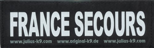FRANCE SECOURS - 2 logos grande taille, blancs et réfléchissants pour Julius K9 / Logo Logo velcro Logo de rechange pour harnais Power K-9 et IDC (tailles de harnais : "1", "2", "3" et "4") - Format du logo : 5 x 16 cm / grand